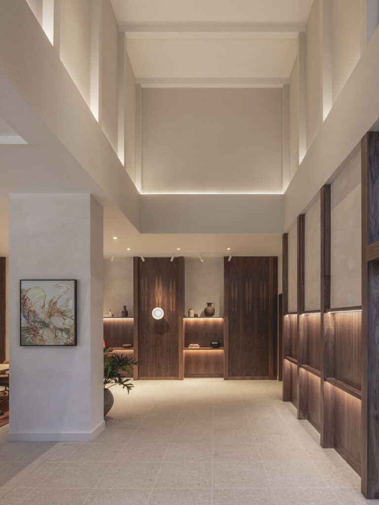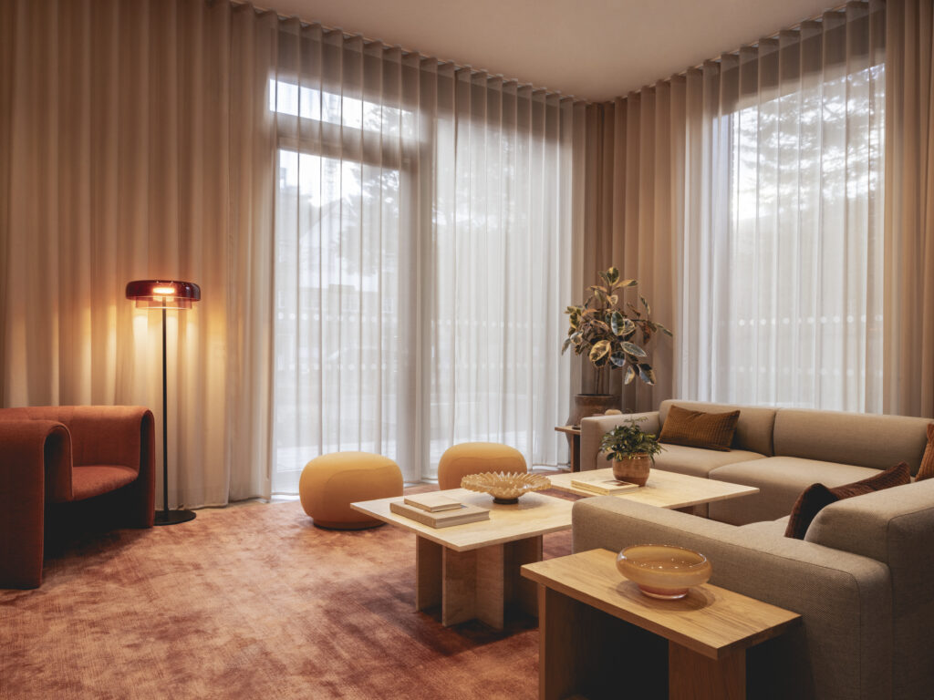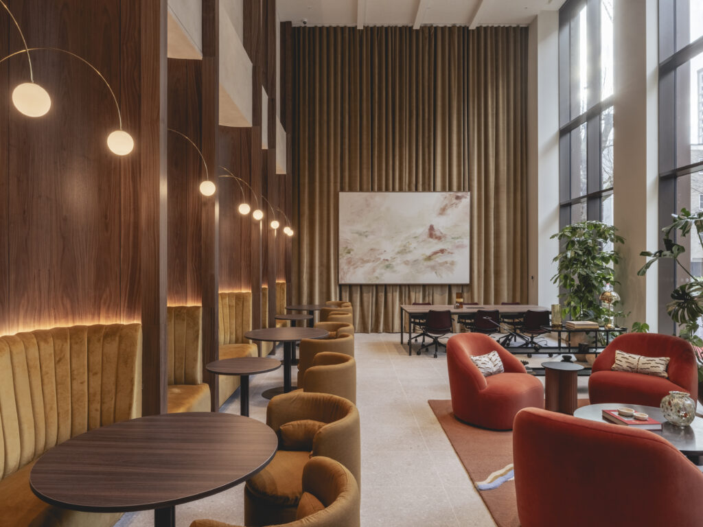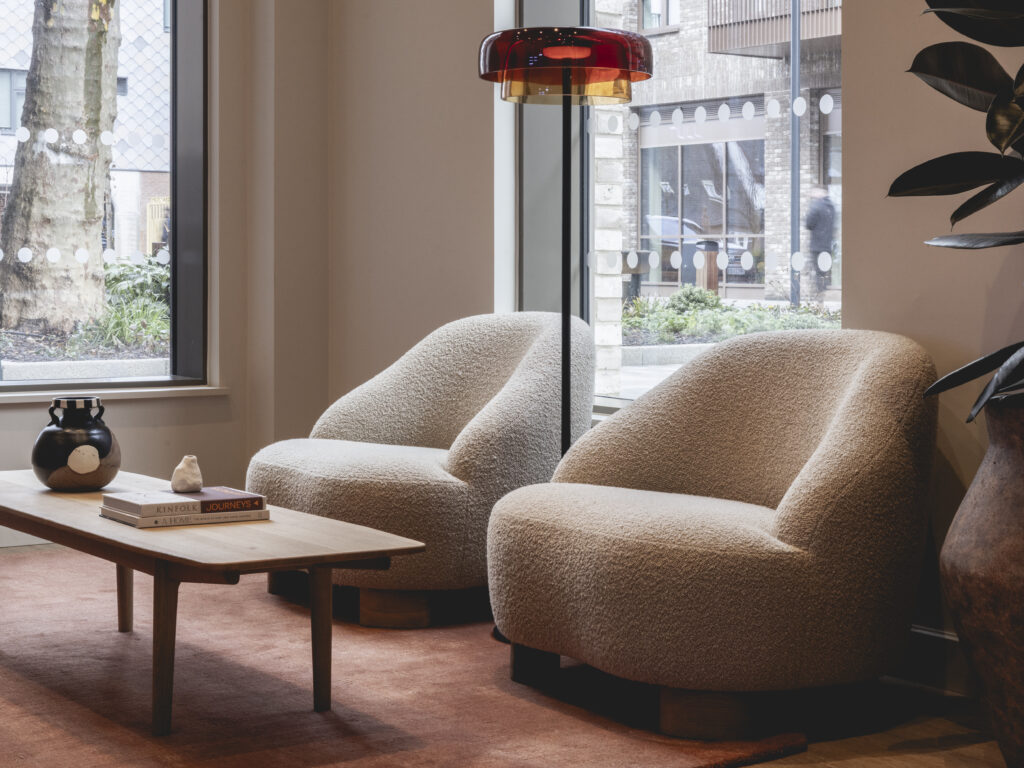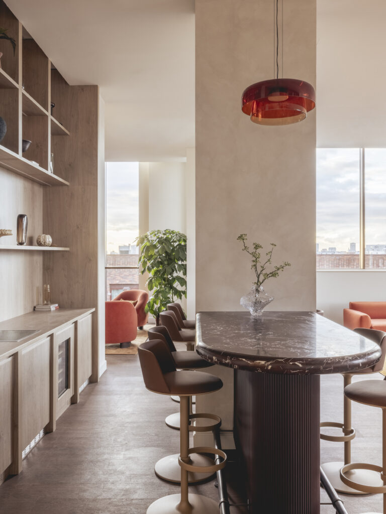 Appointed by Greystar, Johnson Naylor designed the residents’ amenity spaces and supplied the furniture across both buildings – Freans House and Peek Court – including a gym, yoga studio, games room, outdoor terraces, club lounge, private dining room, arts club, co-working space and pet spa, creating a cohesive environment that supports work, wellbeing and social connection.
